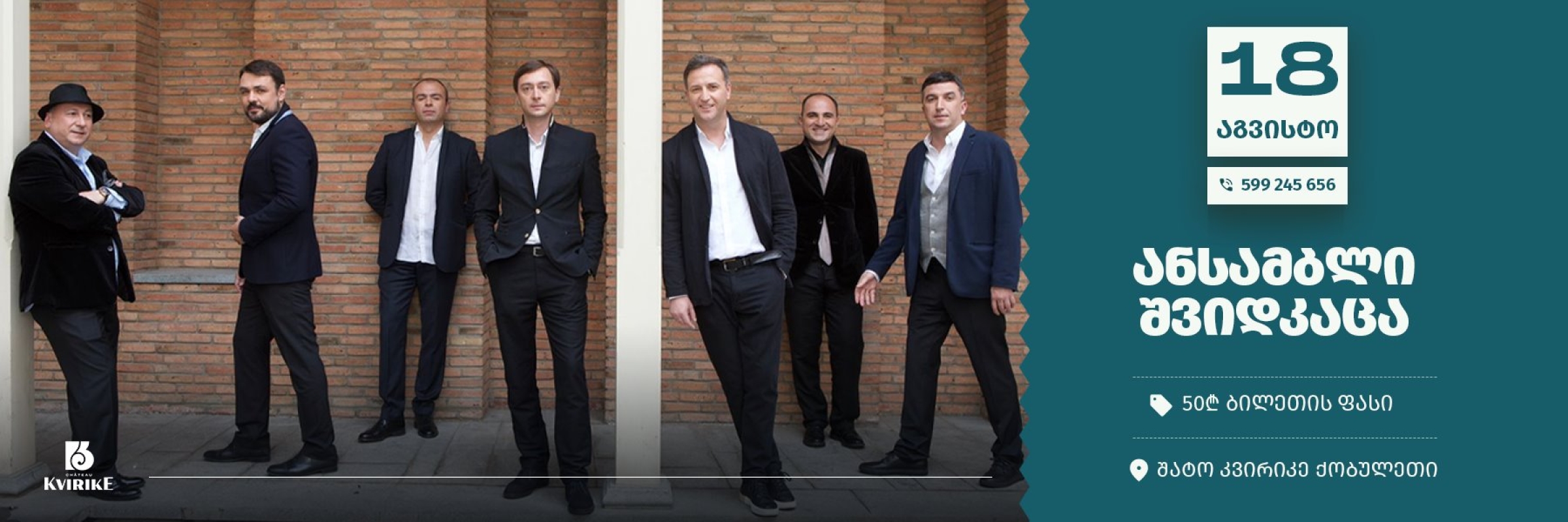 შატო კვირიკე ქობულეთის საზაფხულო ღონისძიებების სერიას ყველასათვის საყვარელი - ანსამბლი “შვიდკაცა” გააგრძელებს.