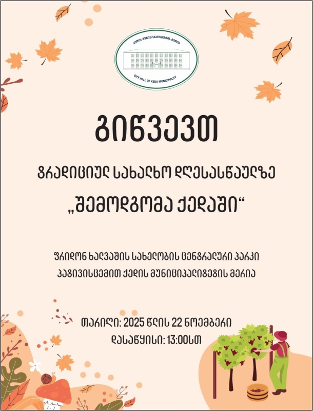 ფრიდონ ხალვაშის სახელობის პარკში გაიმართება სახალხო დღესასწაული „შემოდგომა ქედაში“.