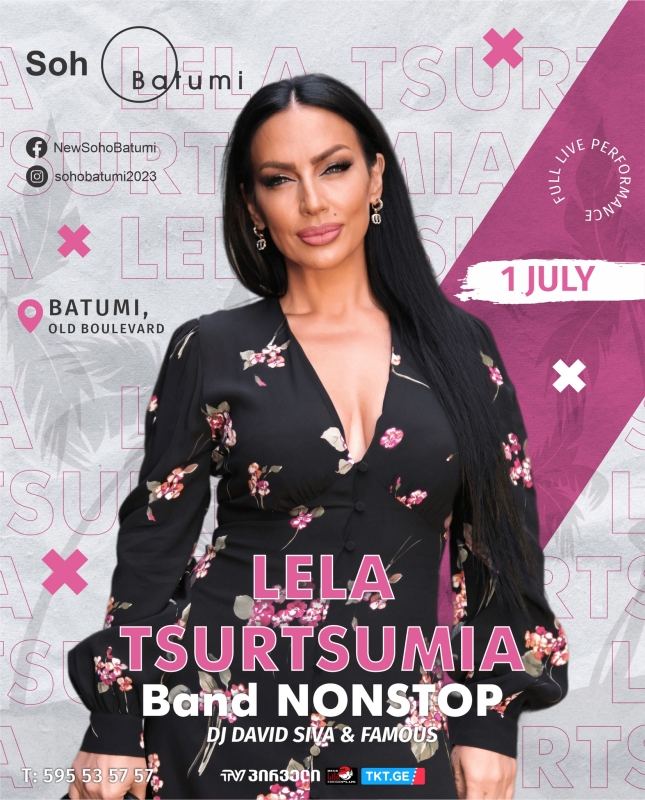 1 июля Soho Batumi представляет летние концерты Лелы Цурцумия, открытие клубного сезона, концерты пройдут исключительно на сцене SOHO.